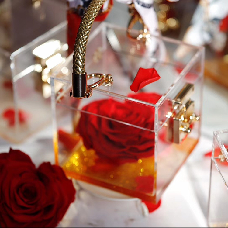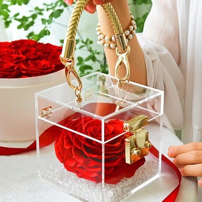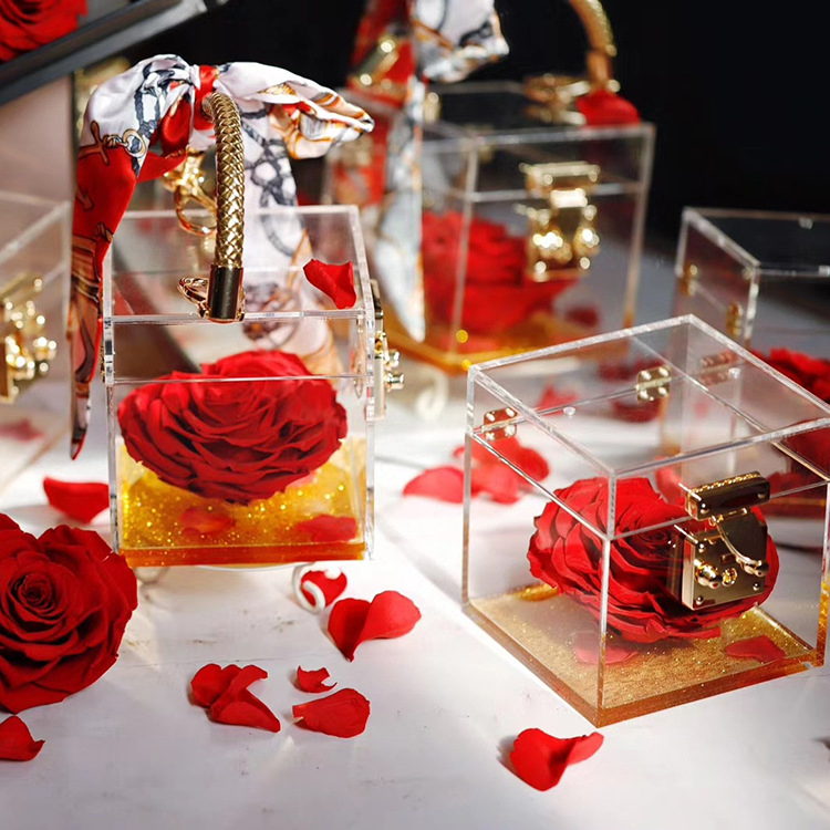 Home > Products > Festival & Party Supplies > Christmas Gifts & Crafts > Acrylic Preserved Rose Flower Box Flower Case One Frame Flowers Gift Boxes Cube Display Case Decor for Home Office